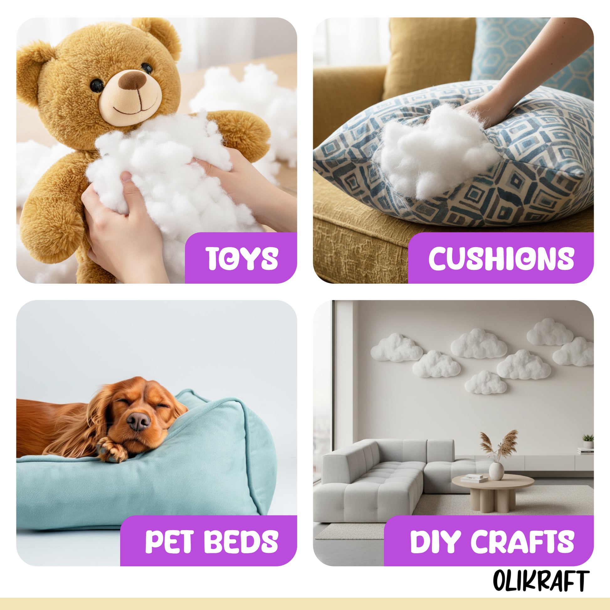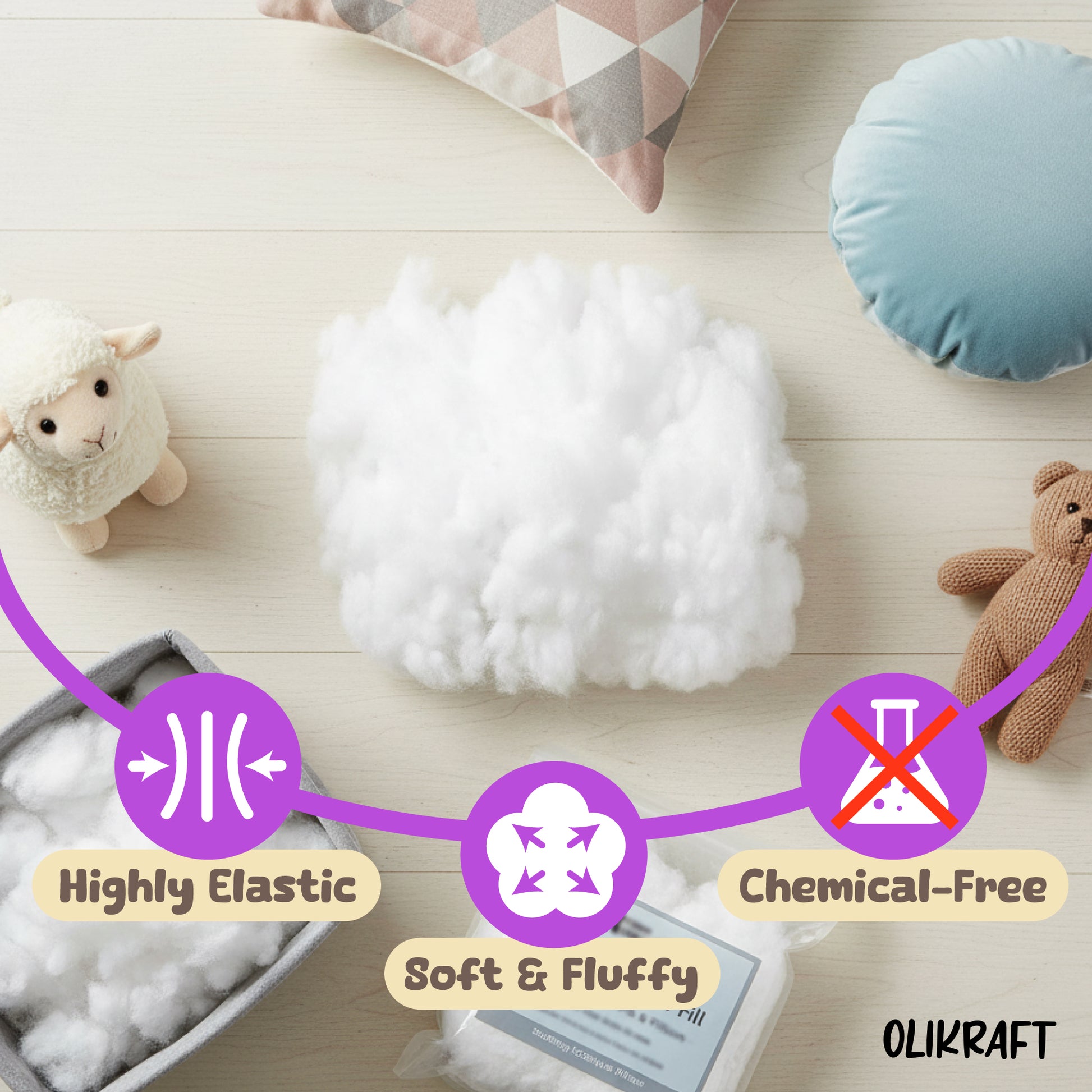 🎯 Whether you're crafting cozy cushions, fluffy toys, or squishy pillows — this fiber fill gives your project the perfect plush finish.