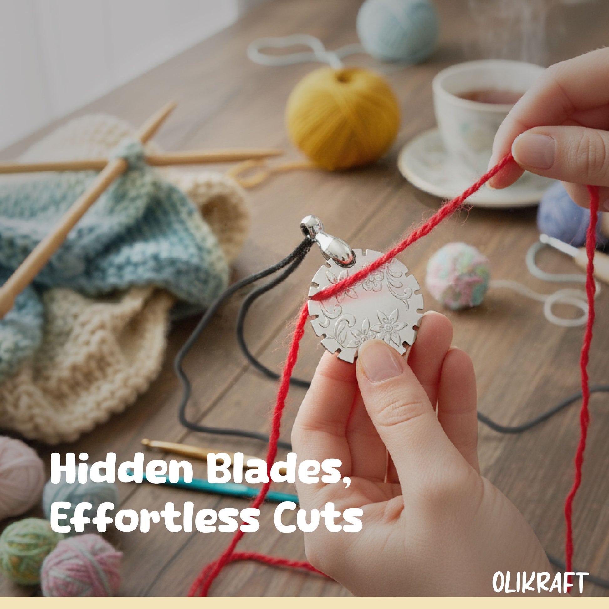 Each pendant features a concealed blade that slices through yarn and thread with ease – no scissors needed! Perfect for crafters of all ages.